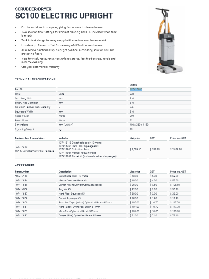 NILFISK - SC100 ELECTRIC UPRIGHT