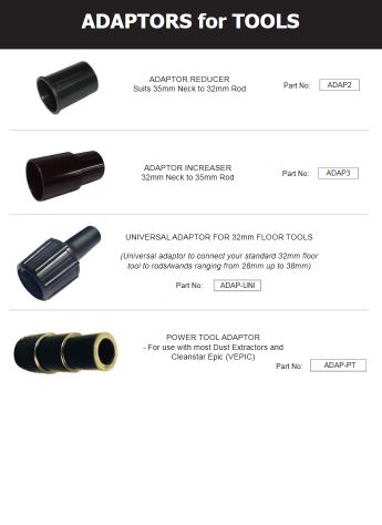 The CLEANSTAR Power Tool Adapter is a vacuum accessory designed to connect your vacuum cleaning system to power tools for efficient dust extraction. This adapter allows you to attach compatible vacuum hoses directly to power tool dust ports, helping capture debris and dust at the source and improve overall cleaning performance. It’s a practical solution for workshop environments, professional cleaning tasks, or any application where integrated dust extraction from power tools is needed. Durable construction ensures a secure fit and long‑lasting use.