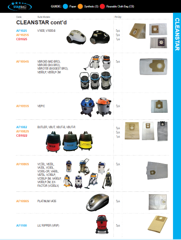 CLEANSTAR - STARBAG AF1054S SYNTHETIC VACUUM CLEANER BAGS