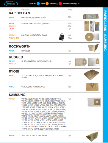 - Pack of 5 paper dust bags