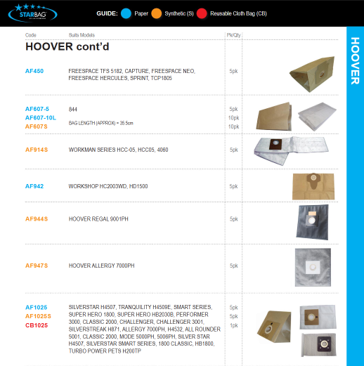 CLEANSTAR - HOOVER ALLERGY AND SAUBER ALLERGY 7000PH SYNTHETIC VACUUM CLEANER DUST BAGS