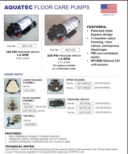 The CLEANSTAR Aquatec Pumps Valve Housing Assembly (AQT-VAK) is a replacement pump component designed for Aquatec diaphragm pumps, used mainly in carpet extraction and cleaning equipment. It houses the internal valves that regulate water flow and pressure, helping maintain efficient pump performance.