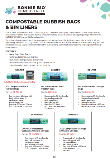 Our Bonnie Bio compostable rubbish bin / kitchen tidy bags are a great alternative to plastic bags and are ideal for use in larger bins in kitchens, homes and work/office areas. They are also the perfect size compostable bin liner bag for Food Waste Kitchen Caddies that are commonly provided to homes by local government councils as part of their food waste recycling programs..