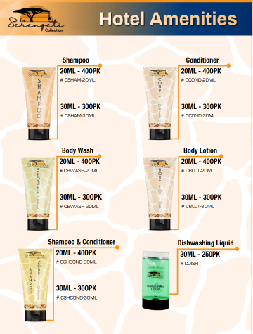 • These luxury hotel guest amenities are part of The Serengeti Collection by Cleanstar