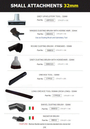 - Suits all vacuum cleaners that use standard 32mm tools and accessories