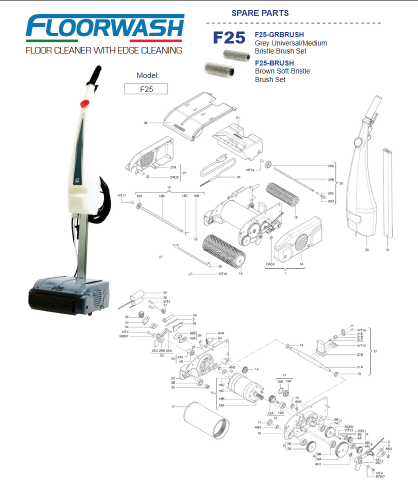 - Replacement brown soft bristle brush set for Floorwash F25 Floor Cleaner