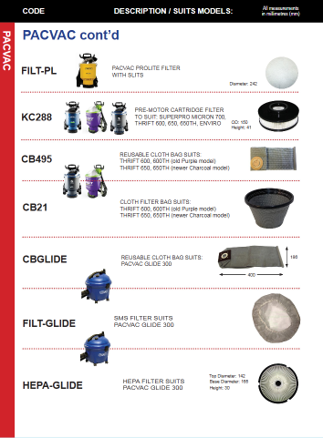- Pacvac - Prolite, Pro Series 1, 2 & 3