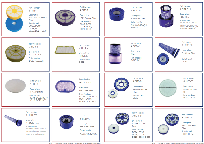 - Dyson - DC04, DC05, DC08, DC19, DC20, DC21, DC29