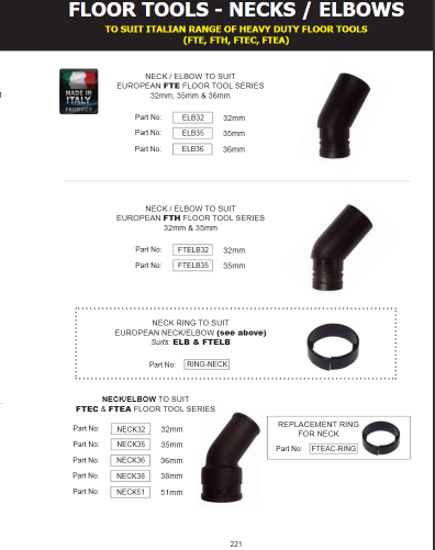 • Neck/Elbow To Suit European FTH Floor Tool Series