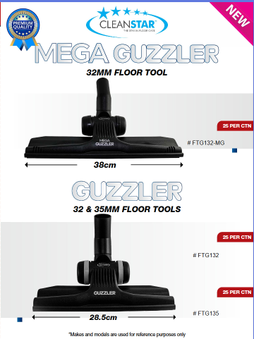 - The Mega Guzzler is a revolutionary cleaning tool that cleans 25% faster than a regular sized Guzzler tool