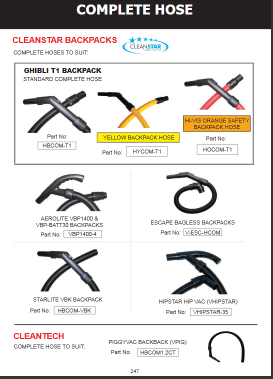 CLEANSTAR - GHIBLI T1 BACKPACK VACUUM CLEANER HOSE ASSEMBLY | Cleaning Products Australia Group Cleaning Products Australia