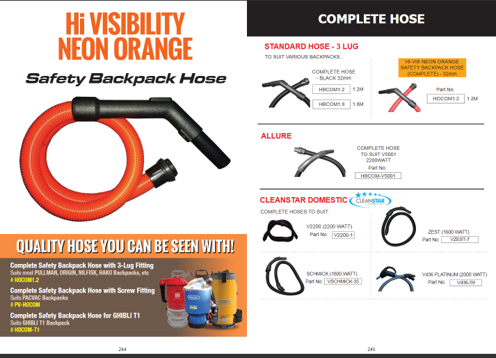 1.2M ORANGE SAFETY BACKPACK HOSE | Cleaning Products Australia Group Cleaning Products Australia