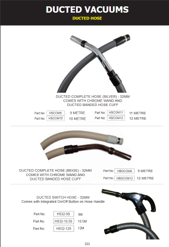 - This is a standard ducted vacuum hose, without on/off switch on the handle, that usually comes with the unit when you purchase them.