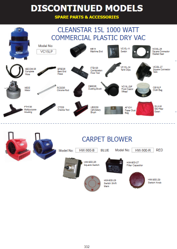 - Cleanstar HW-900 Carpet Blower (Models: HW-900-B, HW-900-R)