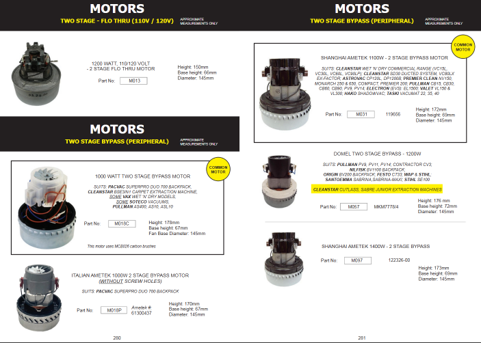 CLEANSTAR - AMETEK 1650 WATT 2 STAGE TANGENTIAL DUCTED VACUUM CLEANER MOTOR WITH CONICAL BASE