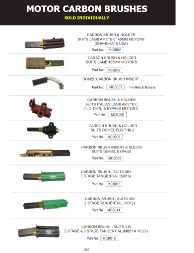 - Single replacement carbon brush with holder to suit various Domel flow-thru vacuum cleaner motors