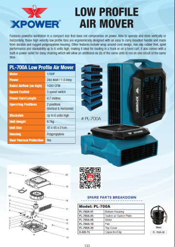 CLEANSTAR - XPOWER LOW PROFILE AIR MOVER 240 WATT