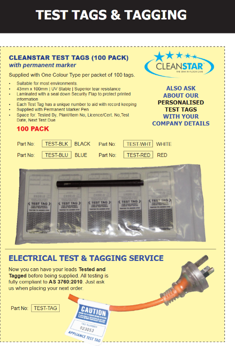 CLEANSTAR -COLOURED TEST & TAG STICKERS