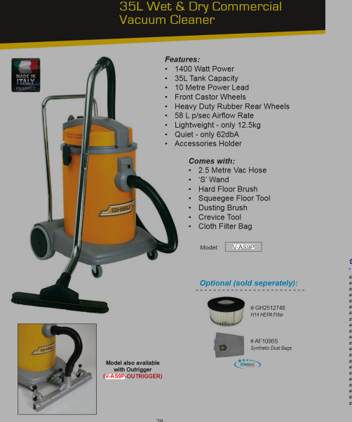 CLEANSTAR-GHIBLI1400W WET/DRY VAC 35L | Cleaning Products Australia Group Cleaning Products Australia