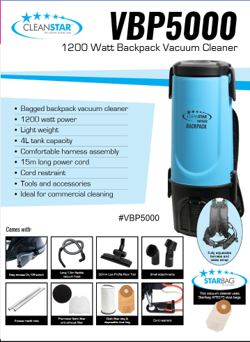 CLEANSTAR - CLEANSTAR 1200 WATT BACKPACK VACUUM CLEANER