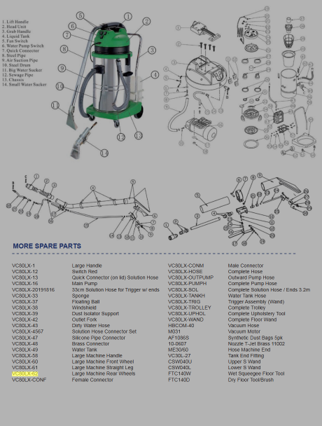 Upgrade your cleaning fleet with the Large Machine Rear Wheels for VC80LX, an essential replacement part engineered for the EX‑FACTOR VC80LX commercial extractor / vacuum machine. Designed to restore smooth movement and support, these rear wheels enable your unit to roll effortlessly over carpets, thresholds, and large floor areas - even while loaded with water or equipment.