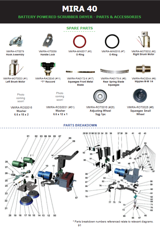 By replacing worn or damaged washers, you ensure that your machine operates smoothly, reducing the risk of malfunctions and extending its lifespan. This replacement part is crucial for preserving the operational efficiency and longevity of your MIRA40 floor scrubber.