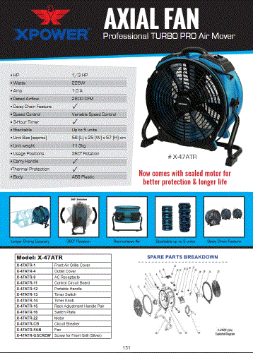 XPOWER X-47ATR Turbo-Pro Axial Air Mover Features: